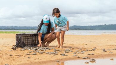 Crianças e jovens participam da soltura de milhares de filhotes de quelônios no Pará